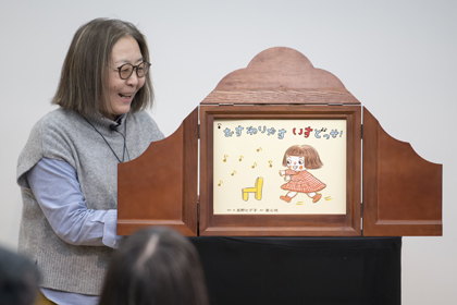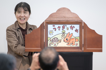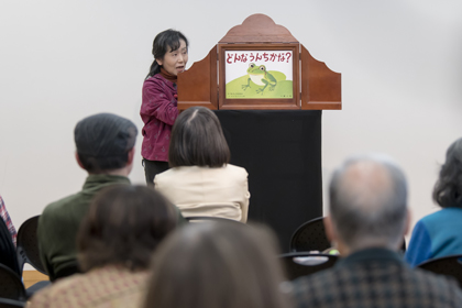 片桐早織さんによる手作り紙芝居『リサーヌカ ヒサーヌカ』の実演