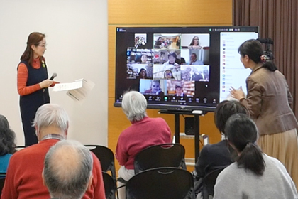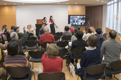 アラビア語をはじめ、ヒンドゥー語、英語、ドイツ語、中国語を交えて、紙芝居で世界をつなぎました。会場には40名以上、オンラインでは70名以上、海外からも、イタリア、インドネシア、オーストラリア、オランダ、韓国、ドイツ、ベラルーシ、マレーシア、などの方からの参加があり、会場と一体となって紙芝居を楽しむことができました。