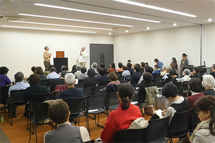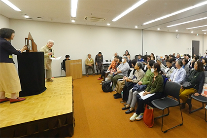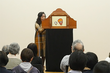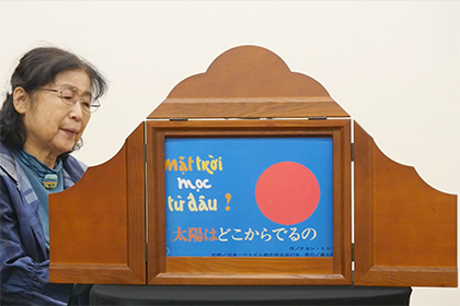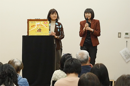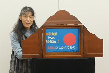 海外へ向けての活動内容の報告や、海外会員と外国語で紙芝居を演じました。