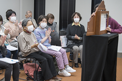 参加者に紙芝居を演じていただき、運営委員がアドバイス等を行いました。