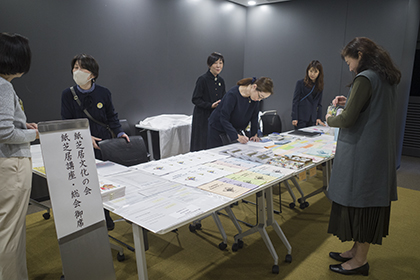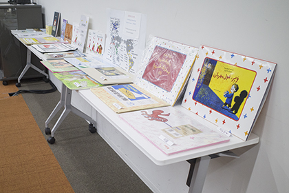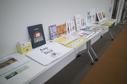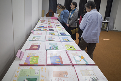 講座受付、海外の紙芝居展示、紙芝居の販売など