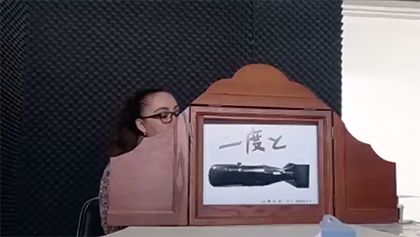 恵泉女学園大学 学生サークル恵泉平和紙芝居研究会KPKA(クプカ)の学生さんが大学の教室で『二度と』を実演されました。昼休みの時間にいつも活動している教室に集まり、届いたばかりの新しい紙芝居舞台を使っての実演だったとのことです。