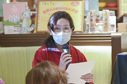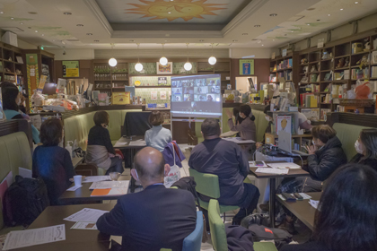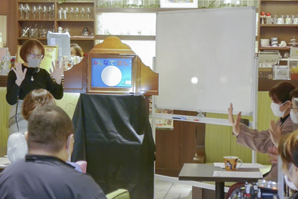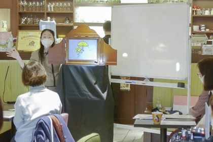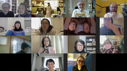 昨年度は新型コロナの影響で、東京でのイベントを延期としましたが、今年は満を持して開催しました。さらに今年は、会場参加とオンライン参加のハイブリッド形式にしました。当日は、会場に24名、オンラインで35名が参加。演じた紙芝居は11作品、オンラインでは、日本からの参加者はもちろん、オーストラリア、フランス、ドイツ、マレーシア、スロベニア、中国の方々とも挨拶を交わし、熱気にあふれた午後を共に楽しみました。