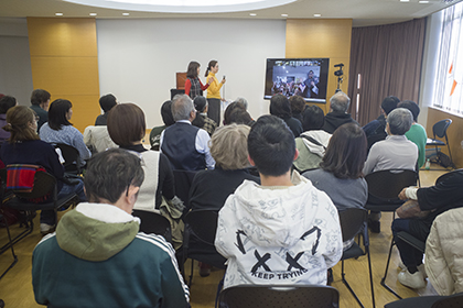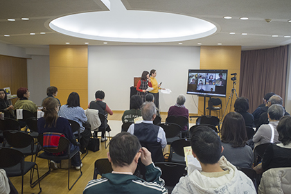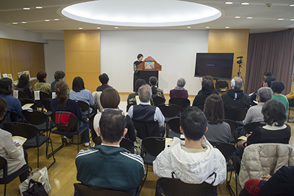 蛭田秀実さんによる『やさしいまものバッパー』(野坂悦子脚本、降矢なな絵)のスペイン語による実演