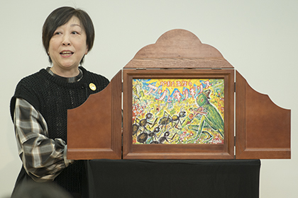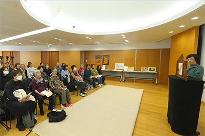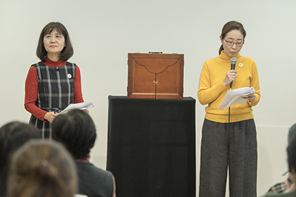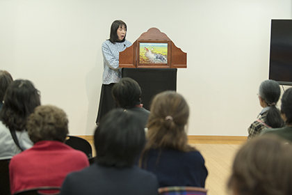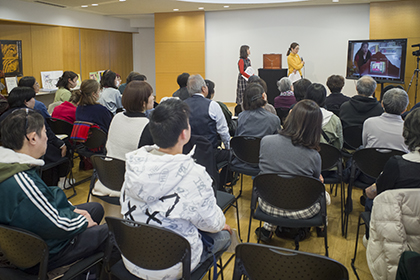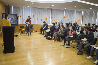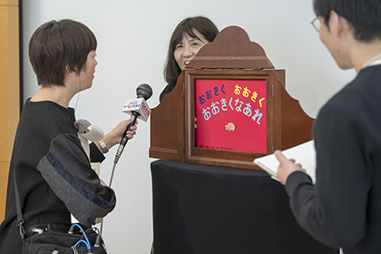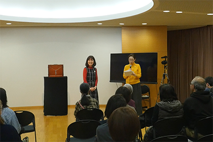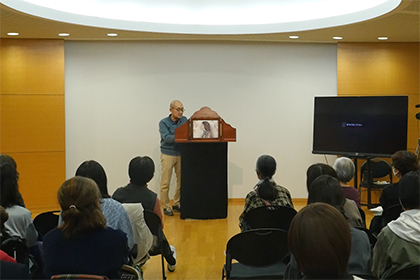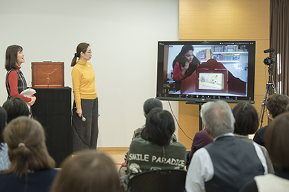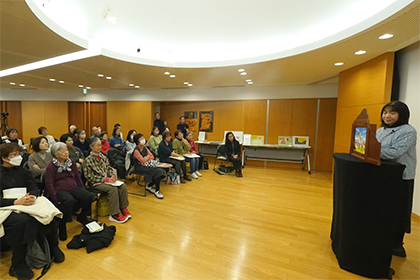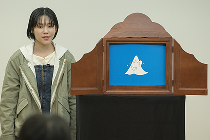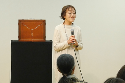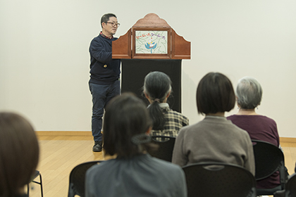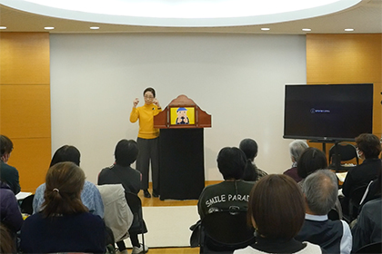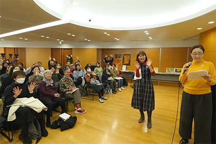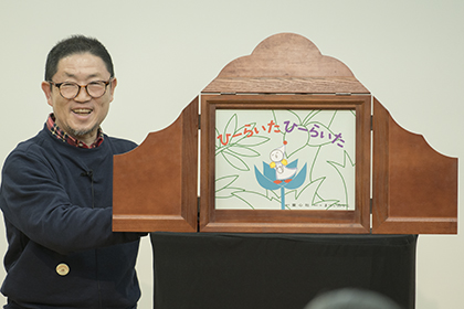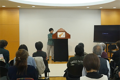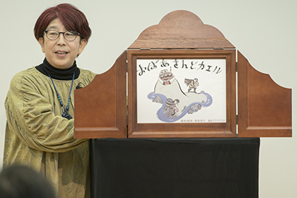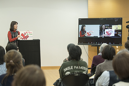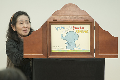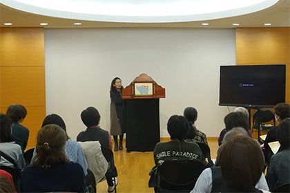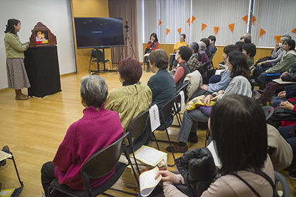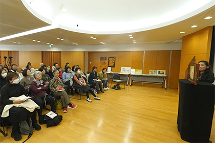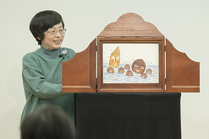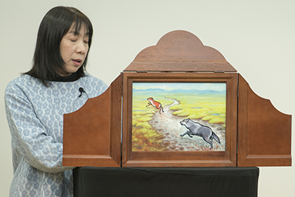 創作講座修了生、小泉由子さんによる手作り紙芝居『はしれトナカイ』の実演