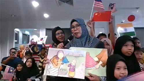 マレーシアIKAMA-MBBYのメンバーMazny M.R.さんとSamsul Khamariahさんは図書館から。Maznyさんが自作紙芝居『A Plate of Surprise』を紹介。