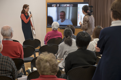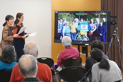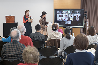 アラビア語をはじめ、ヒンドゥー語、英語、ドイツ語、中国語を交えて、紙芝居で世界をつなぎました。会場には40名以上、オンラインでは70名以上、海外からも、イタリア、インドネシア、オーストラリア、オランダ、韓国、ドイツ、ベラルーシ、マレーシア、などの方からの参加があり、会場と一体となって紙芝居を楽しむことができました。