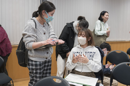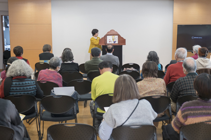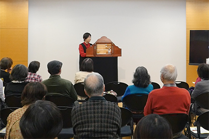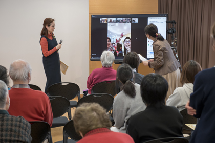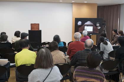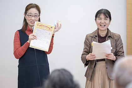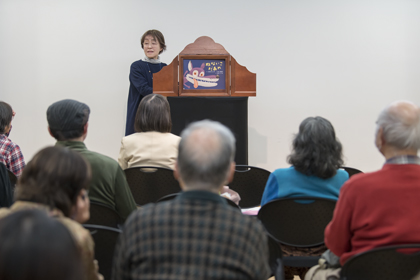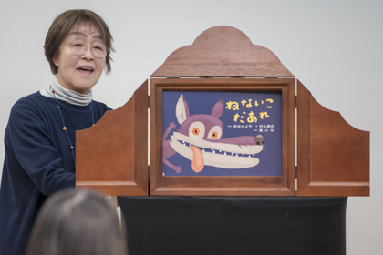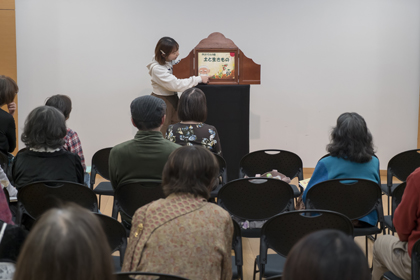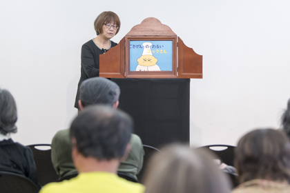 創作講座修了生、加藤里美さんによる手作り紙芝居『くろねことたんぽぽ』の実演