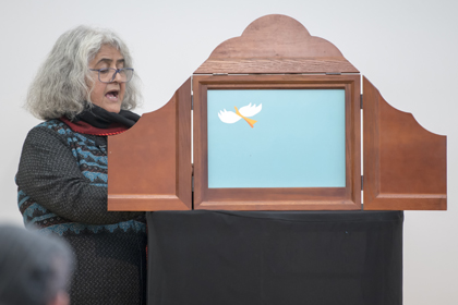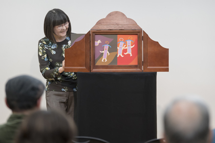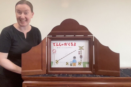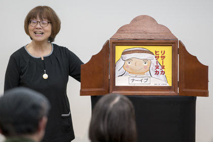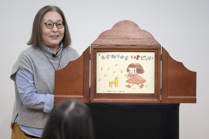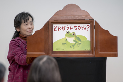 片桐早織さんによる手作り紙芝居『リサーヌカ ヒサーヌカ』の実演